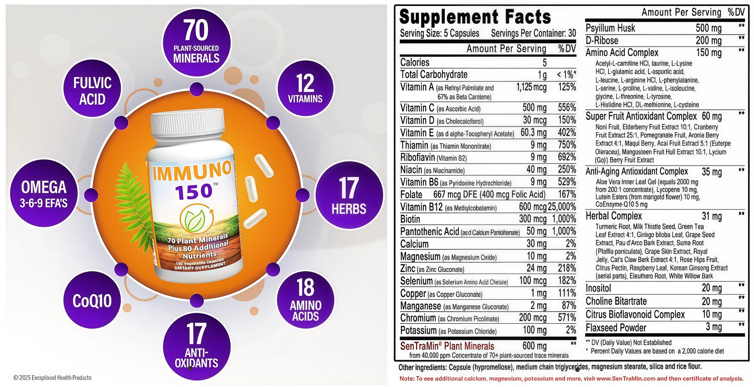 Compare IMMUNO 150’s supplement facts and mineral count to any other nutritional product—and see the difference.